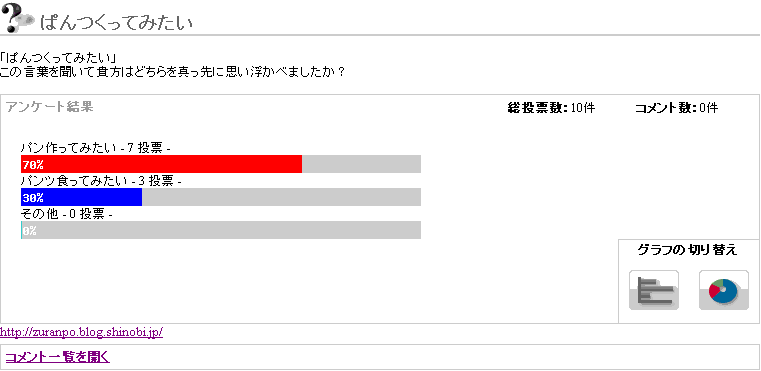 さて、先日行った「ぱんつくってみたい」アンケートの結果が出ました。