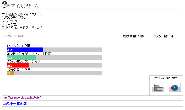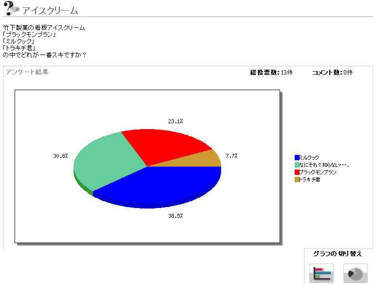 さて、先日行った「アイスクリーム」のアンケート結果が出ました。