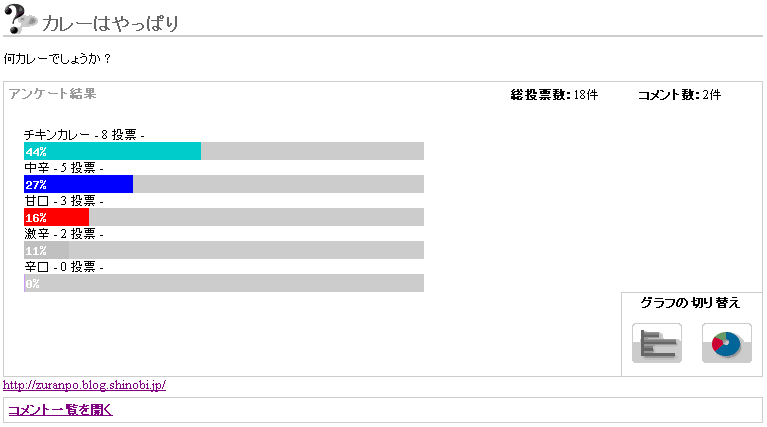 さて、先日行った「カレーはやっぱり」アンケートの結果が出ました。