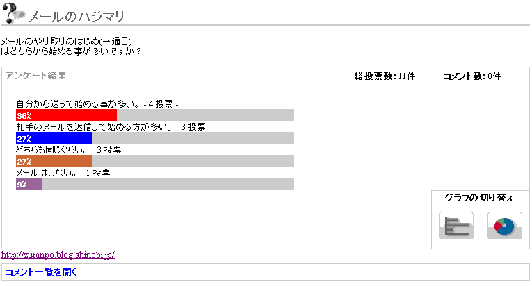 アンケート結果 コメント数:0件 総投票数:11件