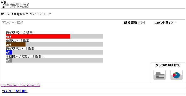 さて、先日行った「携帯電話」のアンケート結果が出ました。