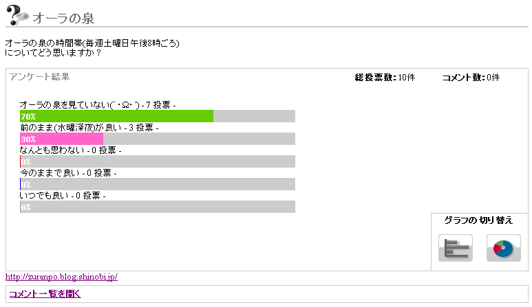 さて、先日行った「オーラの泉」アンケートの結果が出ました。