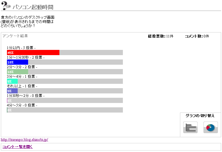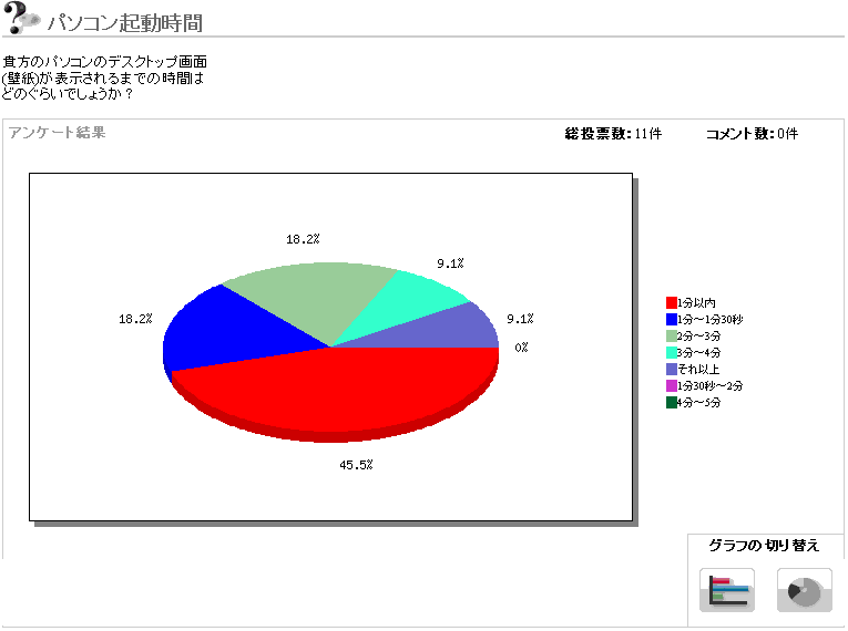 さて、先日行った「パソコン起動時間」アンケートの結果が出ました。