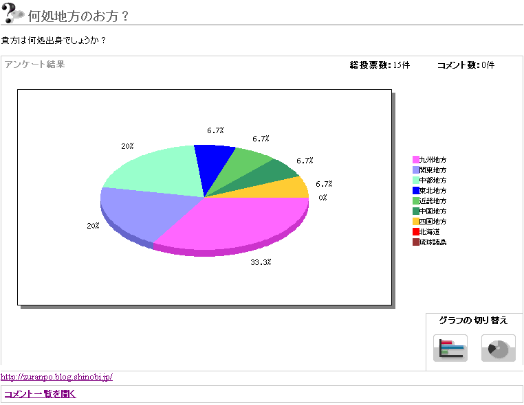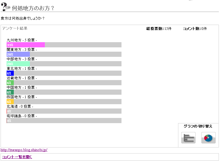 :2007:04/08/00:52 ++ 何処地方のお方?:アンケート結果