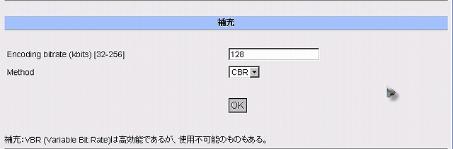音楽ファイルだと、ここでビットレートの変更を行うページへといきます。
