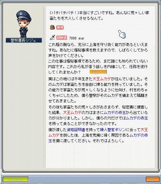 要求されたアイテムを渡すとこのようなことをいわれました。(クリックして拡大してください)