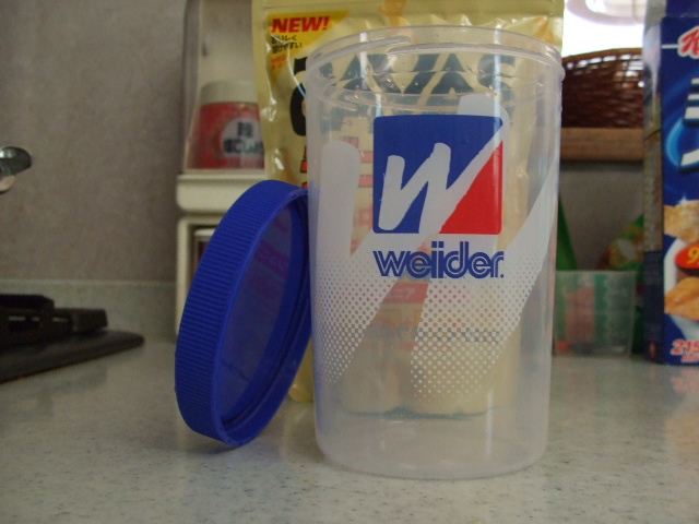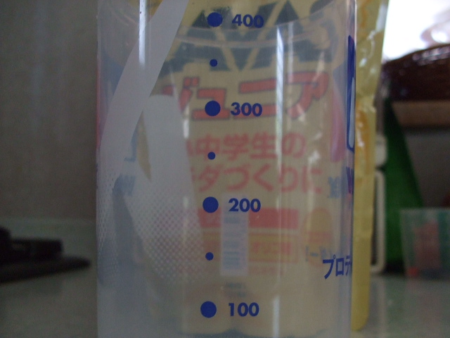 そして以前プロテインチャーハン時(読者の99%が知らないはず)に購入した試供品プロテインについてきたこのカップを使って早速作ってみました。