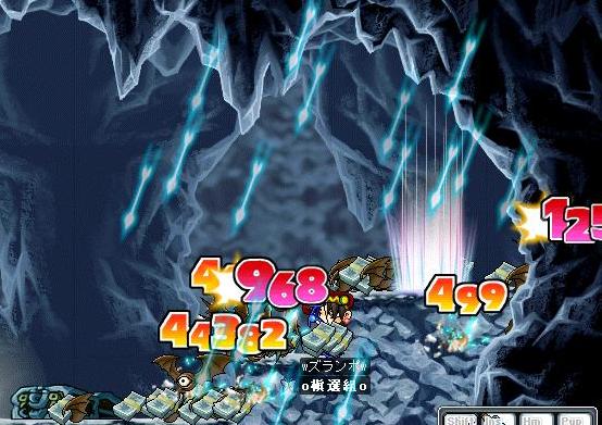 移動することなく狩り続けられる狩場ですこぶる美味しい。LV40前半では時給400Kがやっとの火魔に500k近い効率を与えてくれたのは大きい。さらに数を狩っての時給になるため、装備品、素早さクリスタルが多数入手できる。