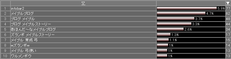 (説明不要でしょうが右から順位、フレーズ、全体の割合、そのフレーズで来た数と、なっております。)