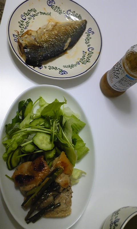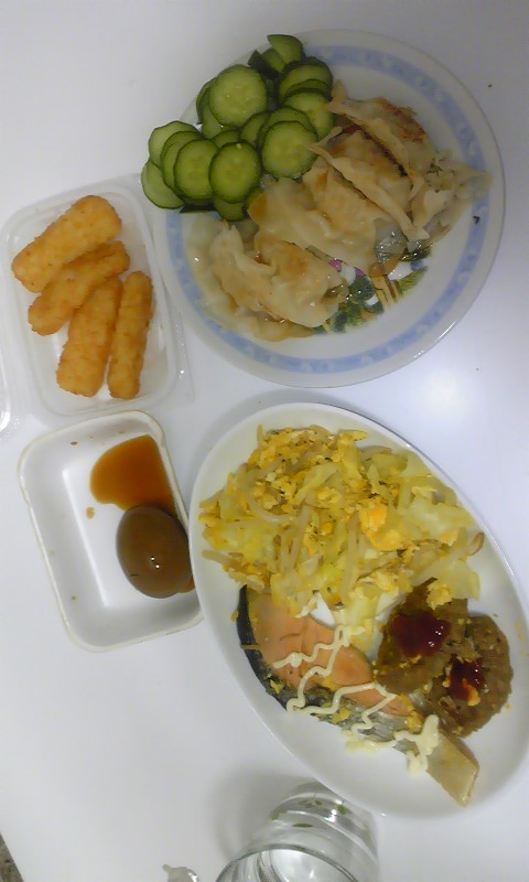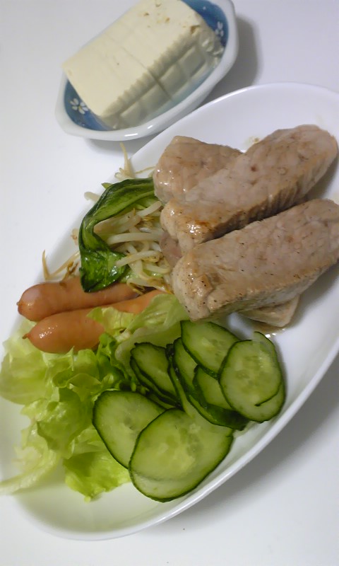 夜:野菜炒め,魚,豆腐